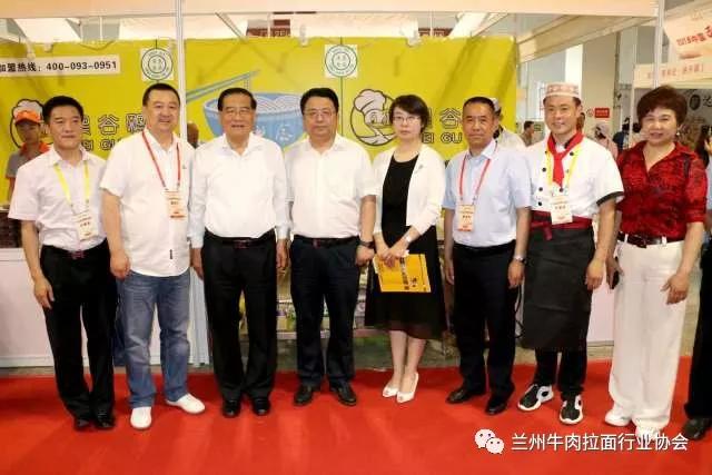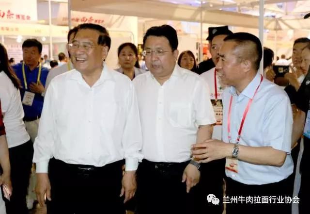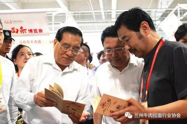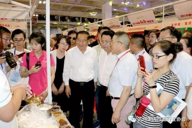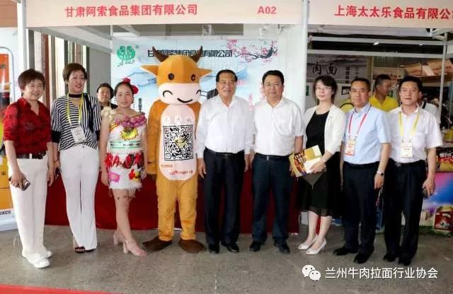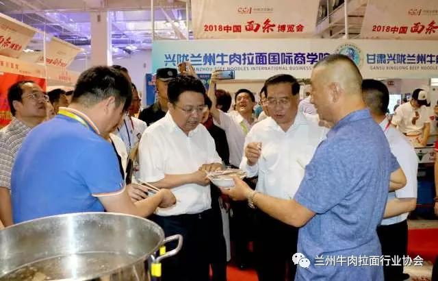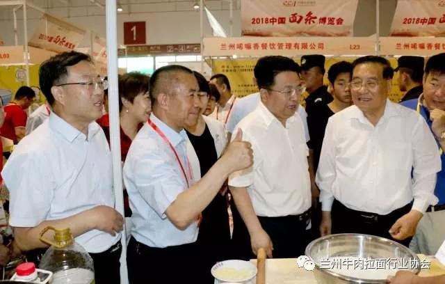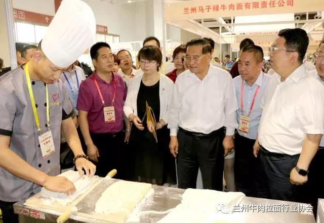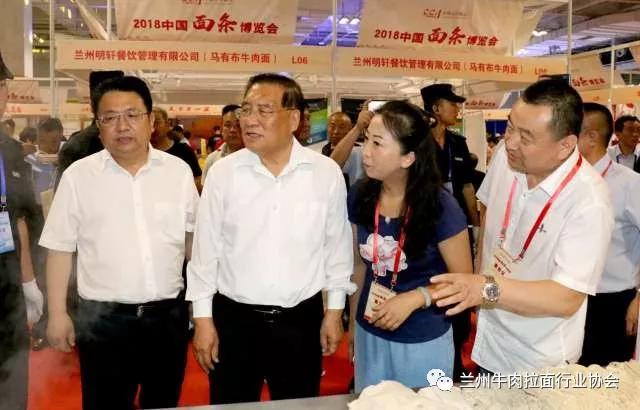 博览会现场,甘肃省商务厅副厅长任福康、兰州市商务局局长王黎、中国烹饪协会特邀执行副会长李亚光,兰州牛肉拉面行业协会会长马利民等对博览会现场进行巡馆,并对全国各类面条企业发展提出发展意见。