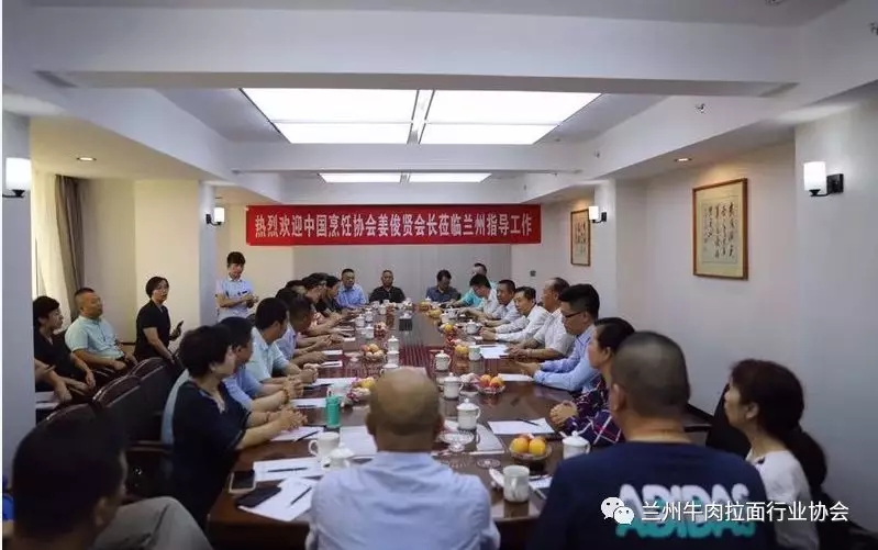 中国烹饪协会会长姜俊贤、甘肃省烹任协会会长赵忠禄、兰州牛肉拉面行业协会会长马利民出席当天座谈会并发言。甘肃省烹饪和兰州牛肉面行业的协会领导及企业家30余人参加当天座谈会。